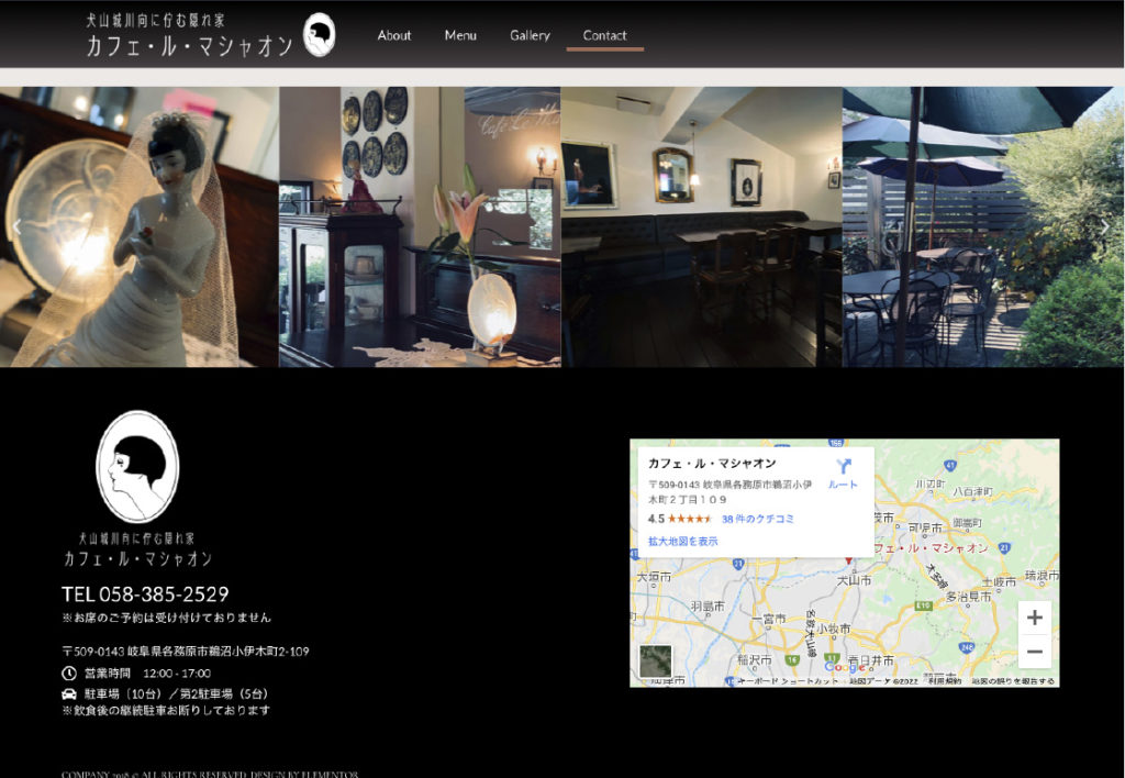 川を挟んで臨む犬山城…のはずが、まるでノルマンディーの最果て、モン・サン・ミシェルに見えてくるような、ここホントに日本? と疑いたくなる、雰囲気たっぷりのカフェ・ル・マシャオンさん。ホームページ制作を担当しました。紅茶をメインに、オーナーが選んだランプや置物の調度品も販売しています。