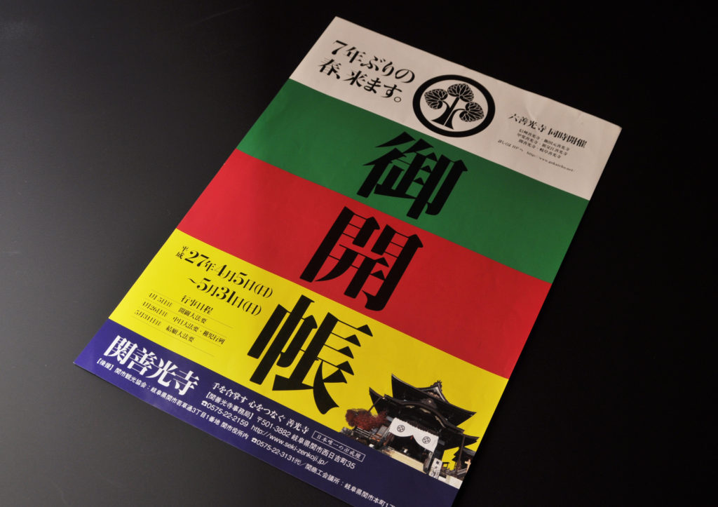 七年ぶりの春が来た。 全国六カ所の善光寺で開催されている「御開帳」。六善光寺同時の御開帳は七年ぶりとあって、全国で賑わっています。関善光寺さんのフライヤー制作をさせていただきました。象徴である五色の力強さを極めてシンプル